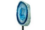 Blauwe agaat is een van de meest populaire varianten van de edelsteen. Bekend om zijn zachte blauwe en witte banden, staat dit type agaat bekend om zijn kalmerende eigenschappen. Verder zou hij je ook de moed geven om je mening te uiten.